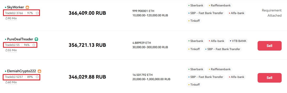 Пиринговой торговлей криптовалютами порой пользуются аферисты. Они меняют похищенную фиатную валюту на цифровые активы и затем переводят их в миксеры для легализации дохода, полученного незаконным путём. Добропорядочных участников рынка, продавших жуликам монеты за «грязные» рубли, могут обвинить в мошенничестве, признав их сообщниками преступников. Дабы не попасть на крючок злоумышленников, сотрудничайте только с трейдерами, совершившими большое количество транзакций с высоким процентом успешности.