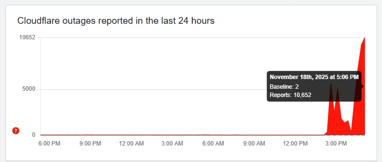 18 ноября провайдер интернет-инфраструктуры Cloudflare столкнулся с масштабными техническими неполадками, которые вызвали нарушения в работе множества сайтов и приложений.