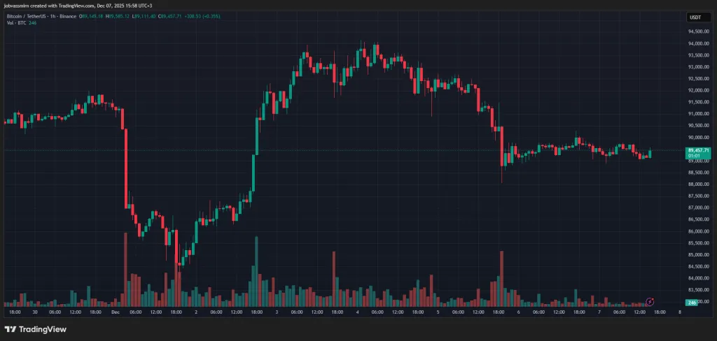 До конца недели актив ушел во флет, на момент написания торгуясь около $89 500. За семь дней монета просела примерно на 2%.