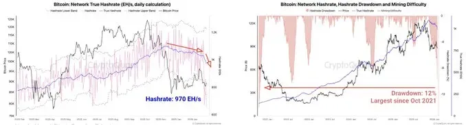 К концу января хешрейт сети биткоина упал до 970 EH/s — самого низкого уровня с сентября 2025 года. Всему виной зимние штормы в США, которые вызывали перебои у майнеров.