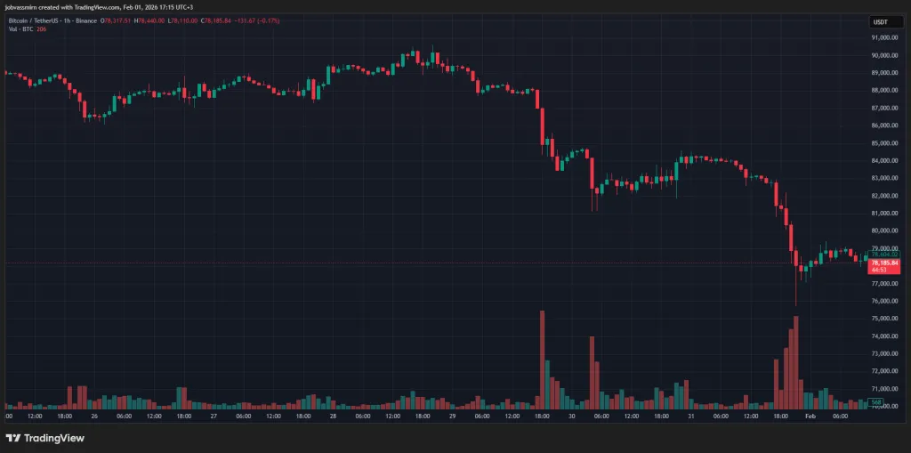 На момент написания цифровое золото торгуется около $78 000, за неделю потеряв 12%.