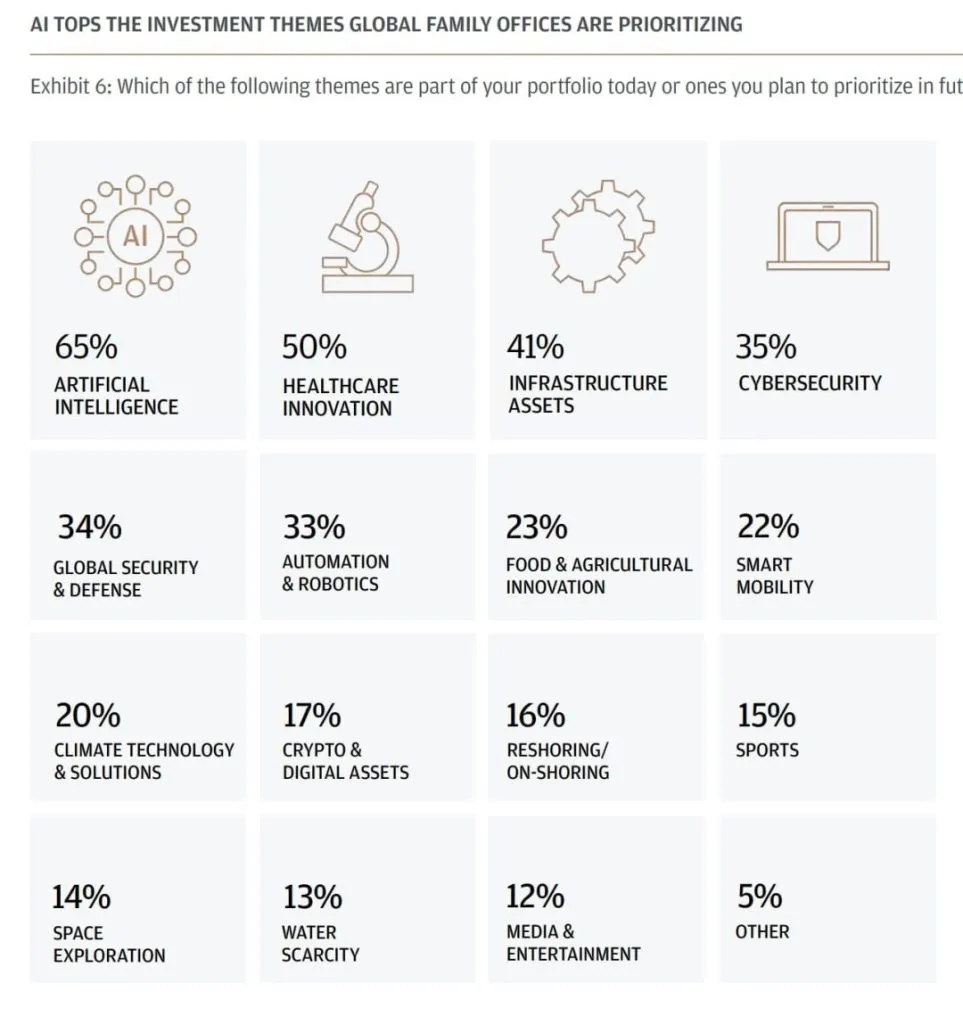 Крупнейшие семейные офисы мира сделали ставку на искусственный интеллект, оставив криптовалюты без внимания. Об этом говорится в отчете JPMorgan.