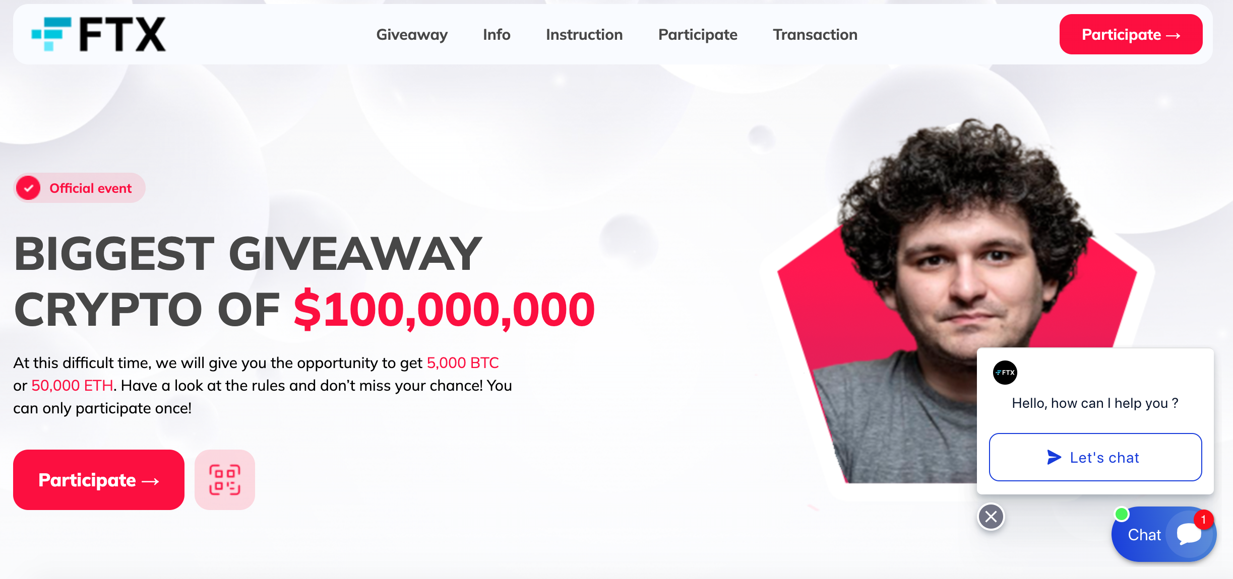 Оригинальный твит удален, однако сам мошеннический сайт еще активен на момент публикации. На единственной его странице размещается размытое фото Бэнкмана-Фрида и обещание раздать до 100 млн долларов в биткоинах и Ethereum. На сайте встречаются те же грамматические ошибки, что и в тексте на видео.