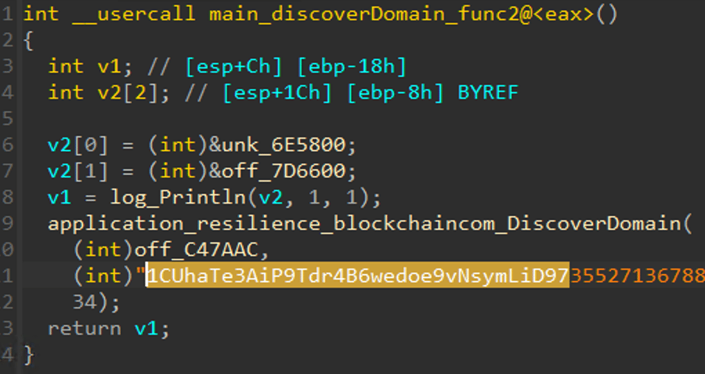 Биткоин-адрес спрятан среди функций вредоносной программы. Источник: nozominetworks.com