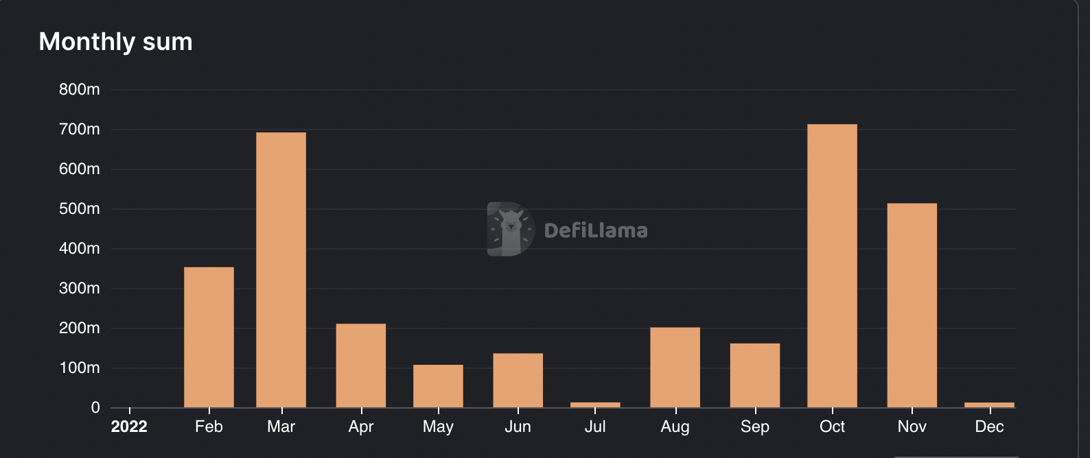 Особенно участникам крипторынка запомнился октябрь. В этом месяце хакеры устроили им настоящую «хэллоуинскую жуть». Согласно аналитикам Chainalysis, октябрь оказался для криптосообщества худшим за всю историю месяцем по размеру убытков, понесенных в сегменте децентрализованных финансов (DeFi).