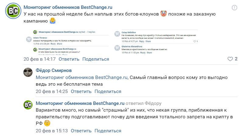 В двадцатых числах февраля 2023 года многие группы о криптовалютах в различных мессенджерах и социальных сетях атаковали боты. Участники криптосообщества считают, что это заказная кампания, которая может «готовить почву» для запрета крипты в РФ