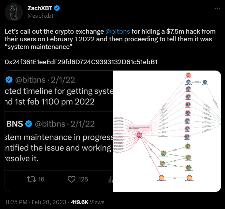 Впрочем, похоже, что признание главы Bitbns прозвучало не просто так. Ранее криптосыщик под псевдонимом ZachXBT выяснил, что индийская криптобиржа под предлогом «технических работ» целый год скрывала факт взлома площадки.