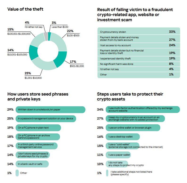 В отсутствии каких-либо правил или общеизвестных фактов люди должны позаботиться о своей защите. Данные этого опроса показывают, что многие становятся жертвами кражи криптовалюты, а в других случаях они теряют реальные деньги и сталкиваются с кражей личных данных.