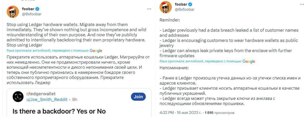 А криптовалютный инвестор DCinvestor сослался на предыдущую утечку данных, указав, что несколько лет назад Ledger допустила утечку персональных данных пользователей. Где гарантии, что это не произойдет завтра?