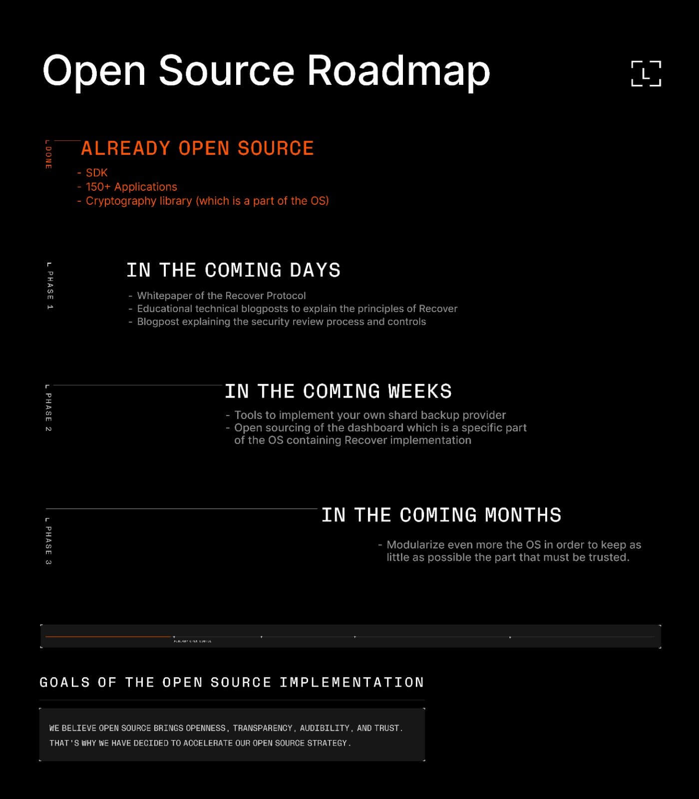Гийом отметил, что «прозрачность и простота использования» останутся главными приоритетами компании. При этом она не может полностью раскрыть код программного обеспечения кошельков Ledger из-за необходимости обеспечения их безопасности и соглашения о неразглашении. Тем не менее, открытого кода от Ledger будет больше, вдобавок руководство компании поделилось дорожной картой своих инициатив.