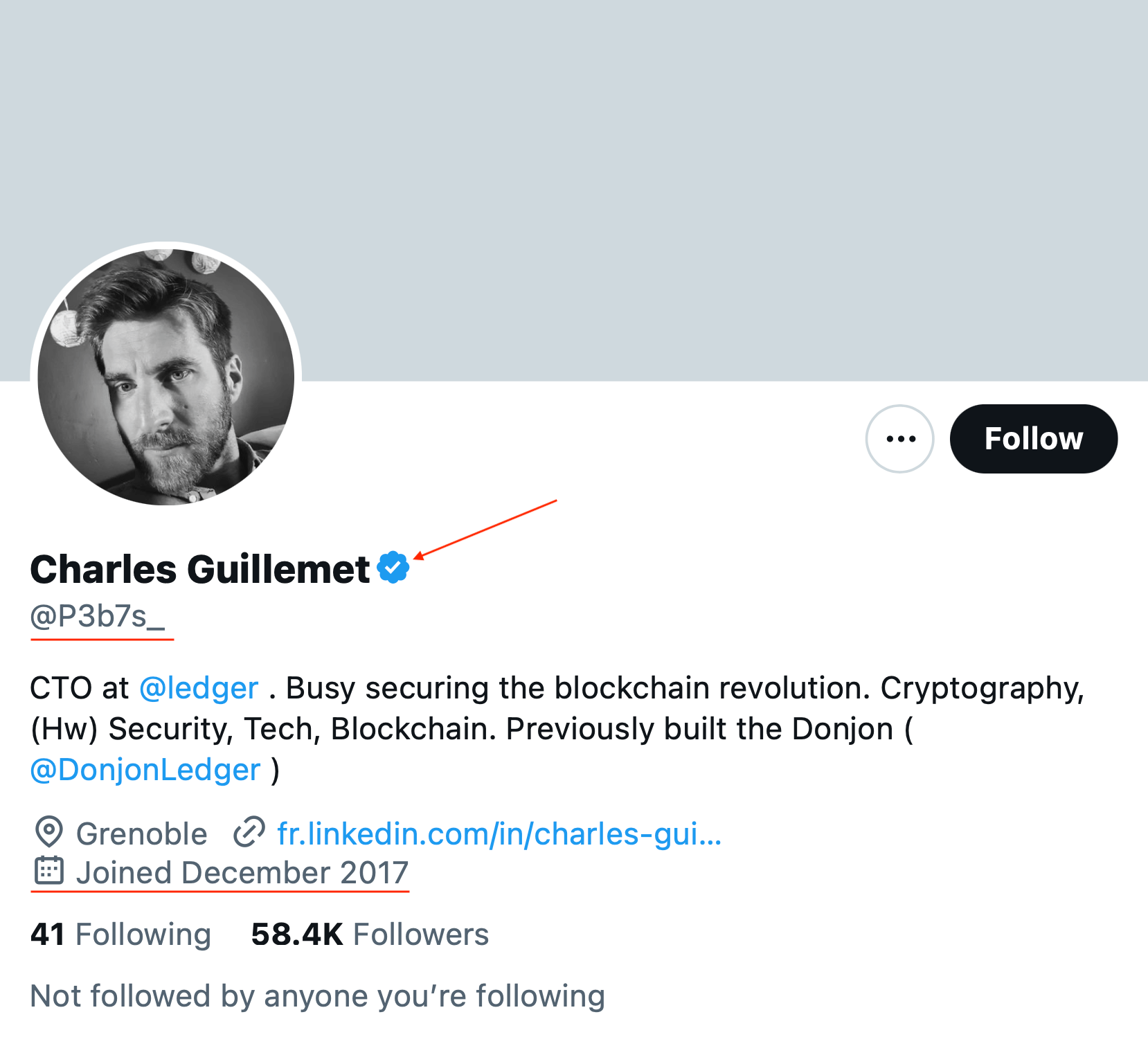 Настоящая страница технического директора Ledger Шарля Гийома в Твиттере