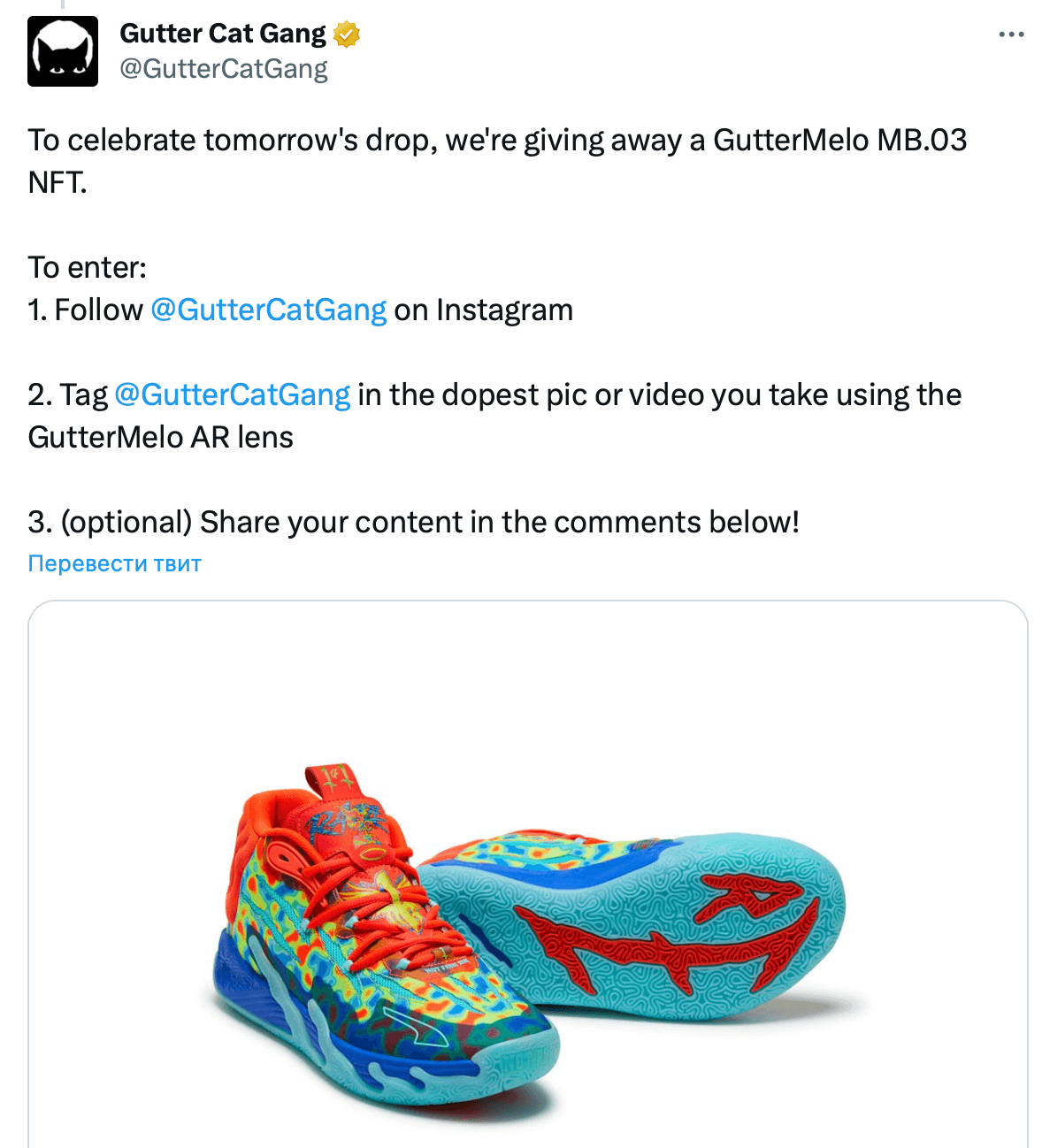 Ещё один сооснователь проекта под псевдонимом Gutter Ric тоже стал целью хакеров, которые смогли завладеть его учётной записью. Аккаунты были использованы мошенниками для распространения ссылок на фейковый лимитированный дроп $NFT-кроссовок якобы от команды Gutter Cat Gang. При переходе по таким ссылкам с горячих кошельков пользователей автоматически выводились средства.