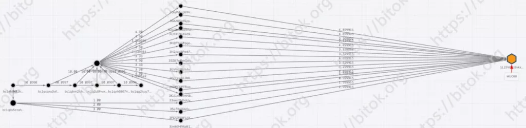 В этом процессе использовалась схема отмывания Peel Chain, при которой криптовалюта разделяется на несколько адресов.