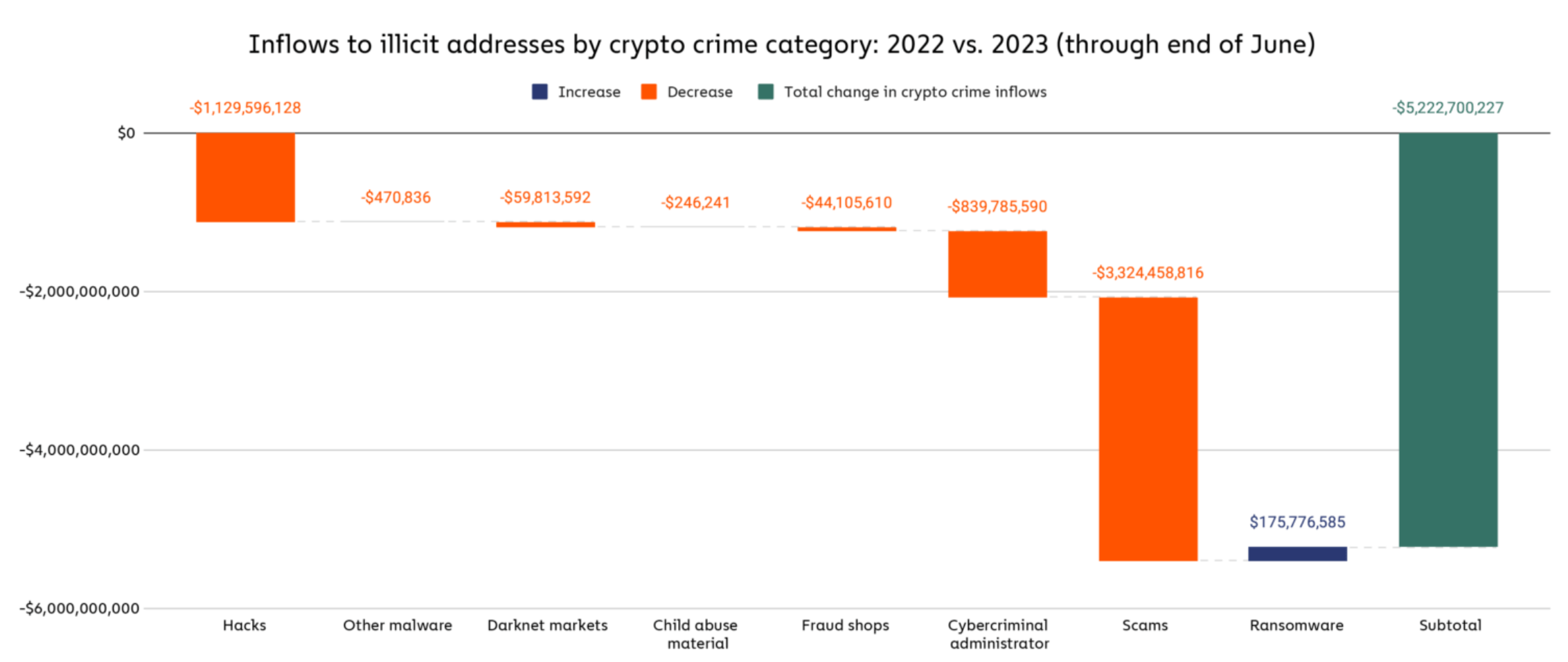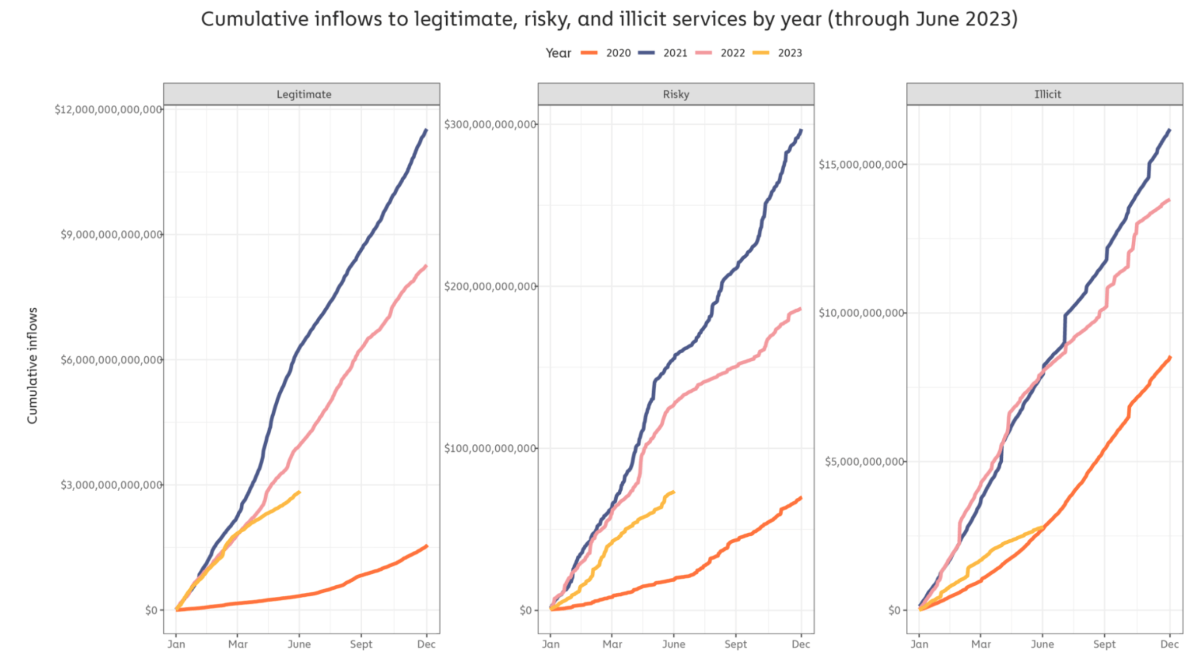 Эксперты отметили, что вопреки стремительному росту стоимости Биткоина в этом году мошенникам всё же не удалось заработать на хайпе. Их «доход» оказался ниже на 77 процентов по сравнению с тем же периодом 2022 года, снизившись с 3.3 до 1.1 миллиарда долларов. В то же время приток средств на незаконные криптоплатформы снизился на 65 процентов.