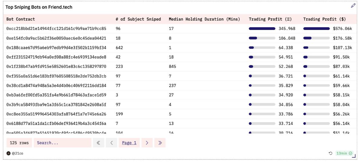 Результаты работы лучших ботов в соцсети Friend.tech