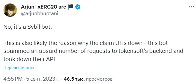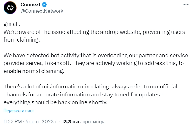Кошелек рассылал большое количество запросов, что привело к проблемам с клеймением токенов пользователями. Команда проекта признала возникшие трудности.