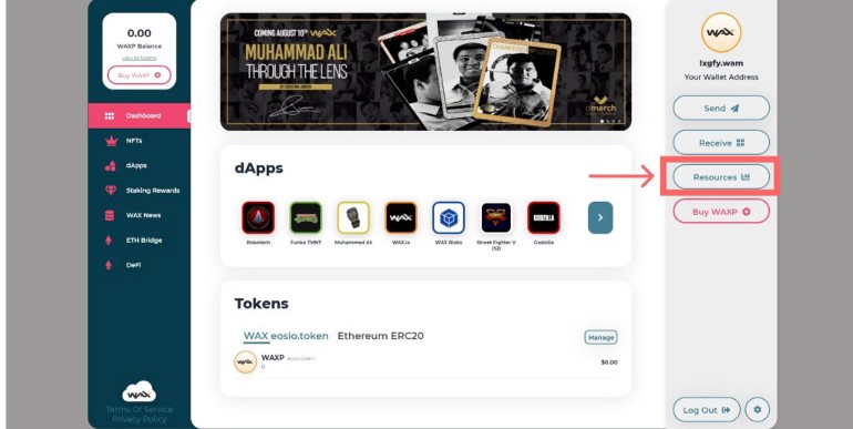 Для взаимодействия с маркетплейсами и приложениями нужно застейкать свои WAXP для каждого ресурса. Выберите ресурс -> введите количество WAX -> нажмите Stake. Из-за изменения нагрузки на сеть количество ресурсов может иногда не хватать, поэтому всегда стоит брать с запасом.