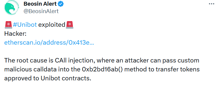 В Beosin отметили, что основная причина взлома — внедрение CAll. Злоумышленник получил доступ к пользовательским данным и смог перевести токены, которые были утверждены для контрактов проекта.