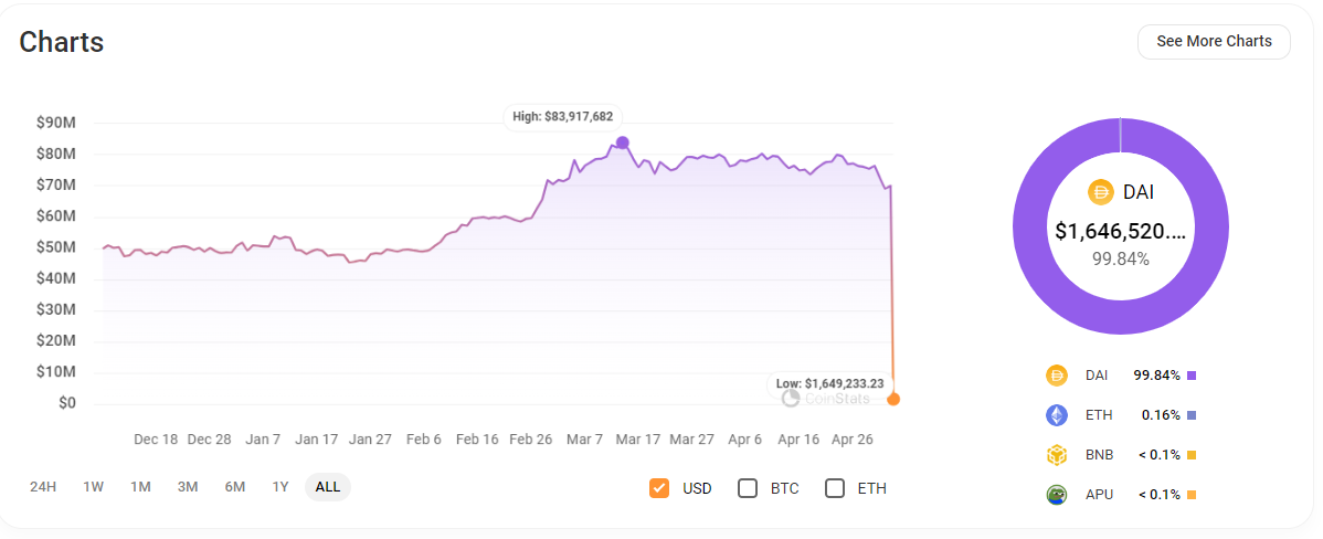 По данным CoinStats, жертва, кошелек «0x1E», потерял более 97% своих общих активов на сумму более 67,8 миллионов долларов.