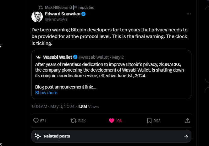 «Конфиденциальность биткоинов сохранится, но сокращение поддержки со стороны zkSNACK для разработчиков биткоинов и преподавателей конфиденциальности является прискорбной неудачей».
