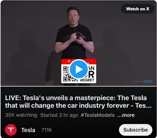 На самом деле это был очередной обман, хотя канал злоумышленников по дизайну чрезвычайно схож с официальной страницей компании Tesla и у него более 15 000 подписчиков. У оригинального канала их число превышает 2,65 млн человек.