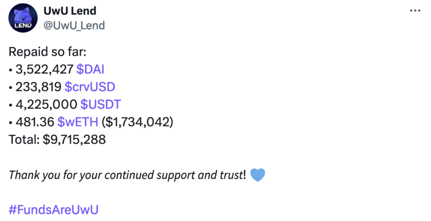 Лендинговый протокол UwU Lend начал выплачивать компенсации жертвам взлома, произошедшего на прошлой неделе. Но проект хакнули снова