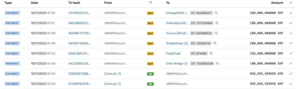 Изучившие взлом эксперты The Block определили, что в течение 30 минут подозреваемые отправили 13 лотов по 1 млн XRP, а также партию в 200 000 XRP. Частично транзакции по какой-то причине прошли.
