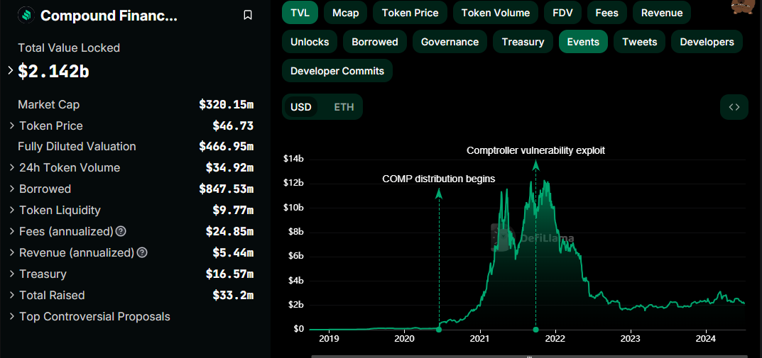 Compound Labs — один из крупнейших DeFi-сервисов в криптоиндустрии. По данным DeFiLlama, в протоколе находятся активы на сумму не менее $2,14 млрд.