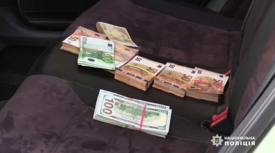 Пачки долларов США и евро были изъяты на месте преступления. Источник: Полиция Киева.