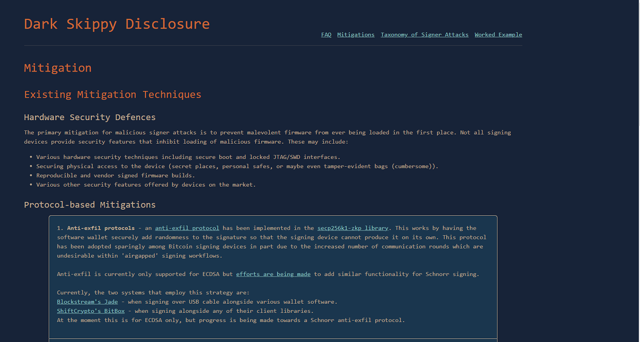 Другое предложение, которое он предлагает, заключается в том, чтобы программное обеспечение кошелька использовало протоколы подписи «антиэксфильтрации», которые не позволяют аппаратному кошельку самостоятельно создавать одноразовые номера.
