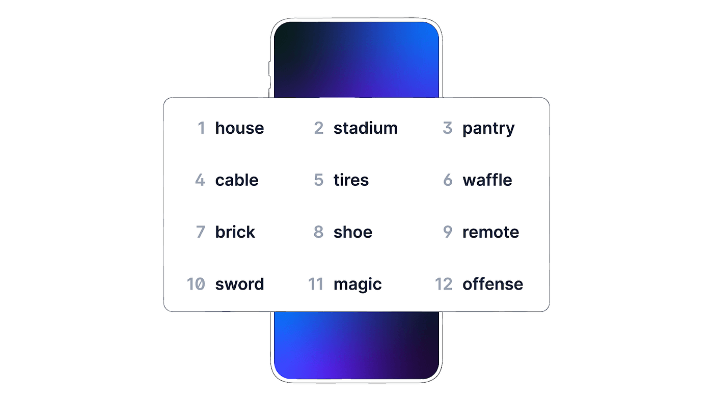 Пример сид-фразы при настройке криптовалютного кошелька