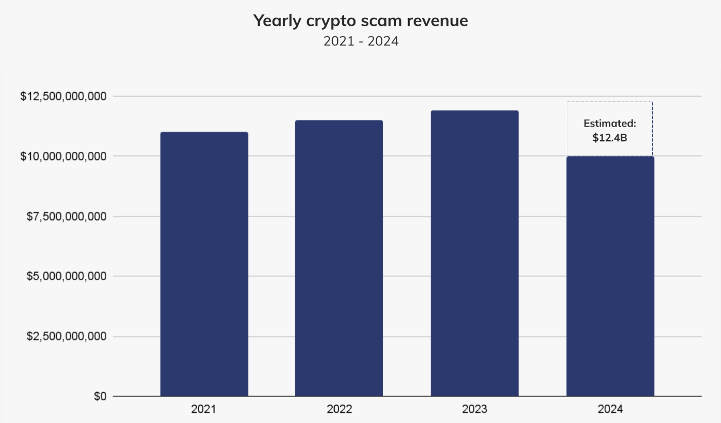 Аналитическая компания Chainalysis выпустила отчет о криптовалютном мошенничестве в 2024 году. По предварительным данным, злоумышленники похитили $9,9 млрд, что меньше показателей предыдущих лет. Однако эта цифра будет расти по мере выявления новых мошеннических адресов и может достичь $12,4 млрд к следующему году.