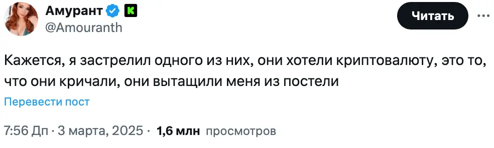 Ранее стримерша сообщала, что в ноябре 2024 года у нее было около 211 биткоинов на сумму более 20 миллионов долларов, что сделало ее целью вооруженного ограбления.