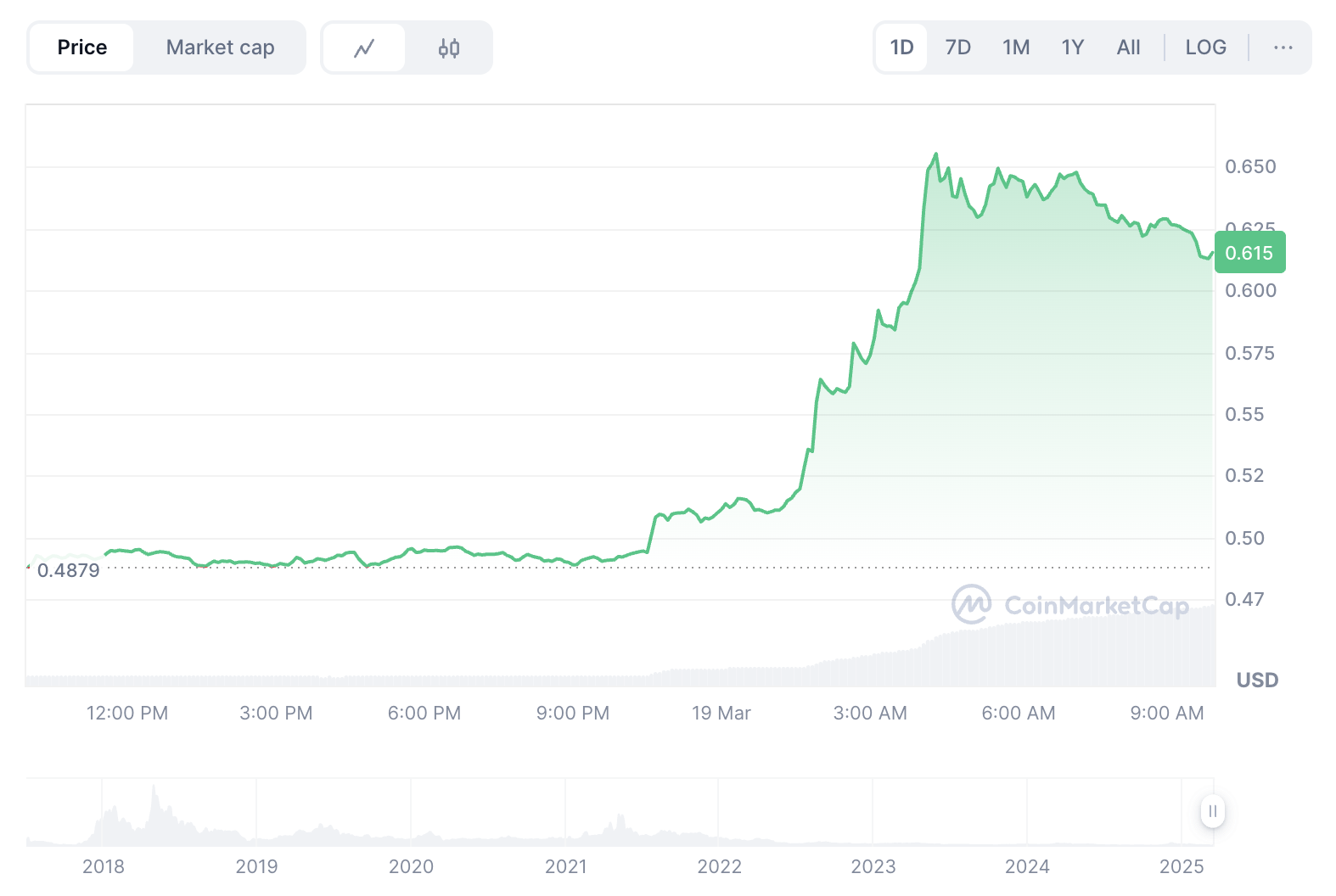 По данным CoinMarketCap, на момент написания матриала EOS торгуется по $0,6151 при капитализации в размере $955 млн.