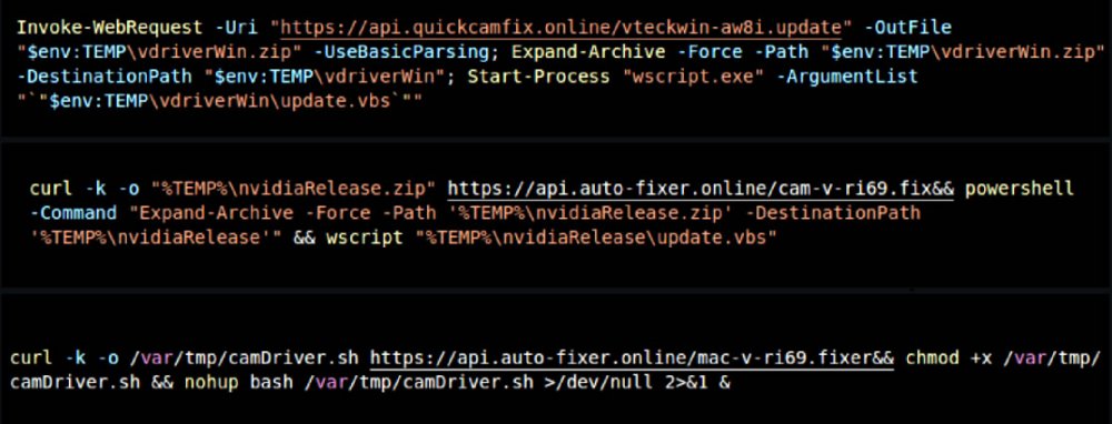 Сначала рекрутеры связываются с кандидатами и отправляют приглашения на платформы проверки навыков где собирают личные данные. Затем жертв просят включить камеру и видео для собеседования. В этот момент им предлагают скопировать и выполнить команды под видом обновления драйверов, что приводит к компрометации устройства.