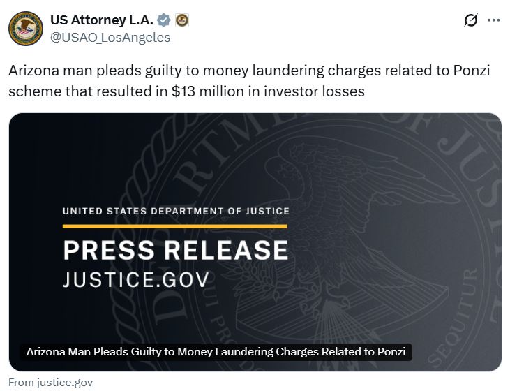 Он участвовал в схеме, обманувшей инвесторов на $13 млн под предлогом использования «криптоботов с ИИ» и фальшивого государственного учреждения.