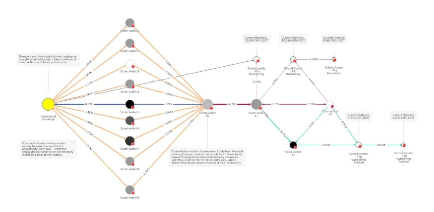 Арестованные активы связаны с мошеннической схемой «разделки свиней». Термин означает, что злоумышленники «откармливают» жертву на протяжении длительного времени, прежде чем обмануть. Преступники выстраивают доверительные отношения, после чего побуждают инвестировать в фейковые проекты и исчезают с деньгами.