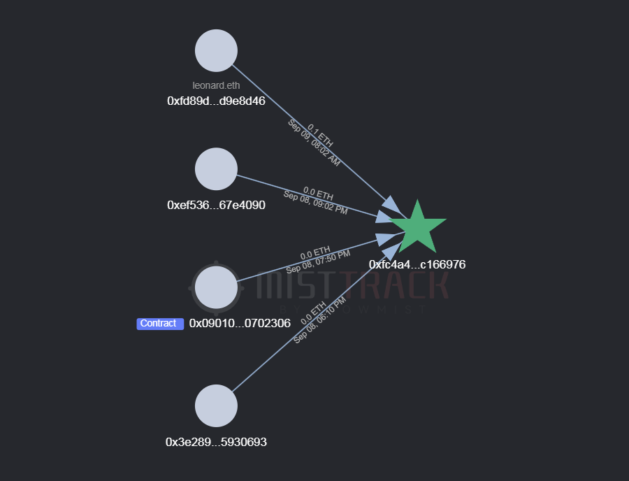 Интересный факт: 0.1 ETH были получены от одного пользователя с доменным именем leonard.eth (0xFD89d3831C6973fB5BA0b82022142b54AD9e8d46).