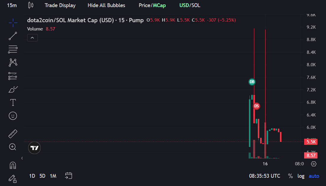 Согласно данным последней, капитализация этого мемкоина в моменте превысила $9000, после чего откатилась. Относительно небольшой объем торгов, а также отсутствие значительных скачков цены и капитализации могут свидетельствовать о том, что жертв было немного.