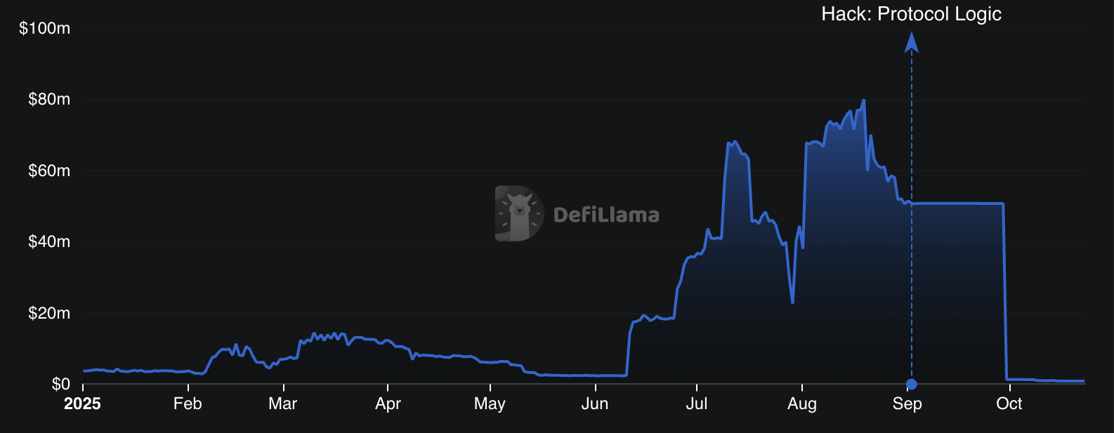 По данным DefiLlama, после взлома общая стоимость заблокированных активов (TVL) Bunni снизилась с $50,82 млн до всего $1,3 млн за месяц, что составляет падение на 97,44%.