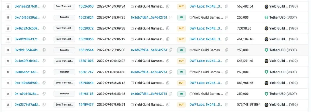 Атакованный кошелек аналитик связал с DWF Labs, поскольку он взаимодействовал с адресом Yield Guild Games, который сотрудничает с маркетмейкером.