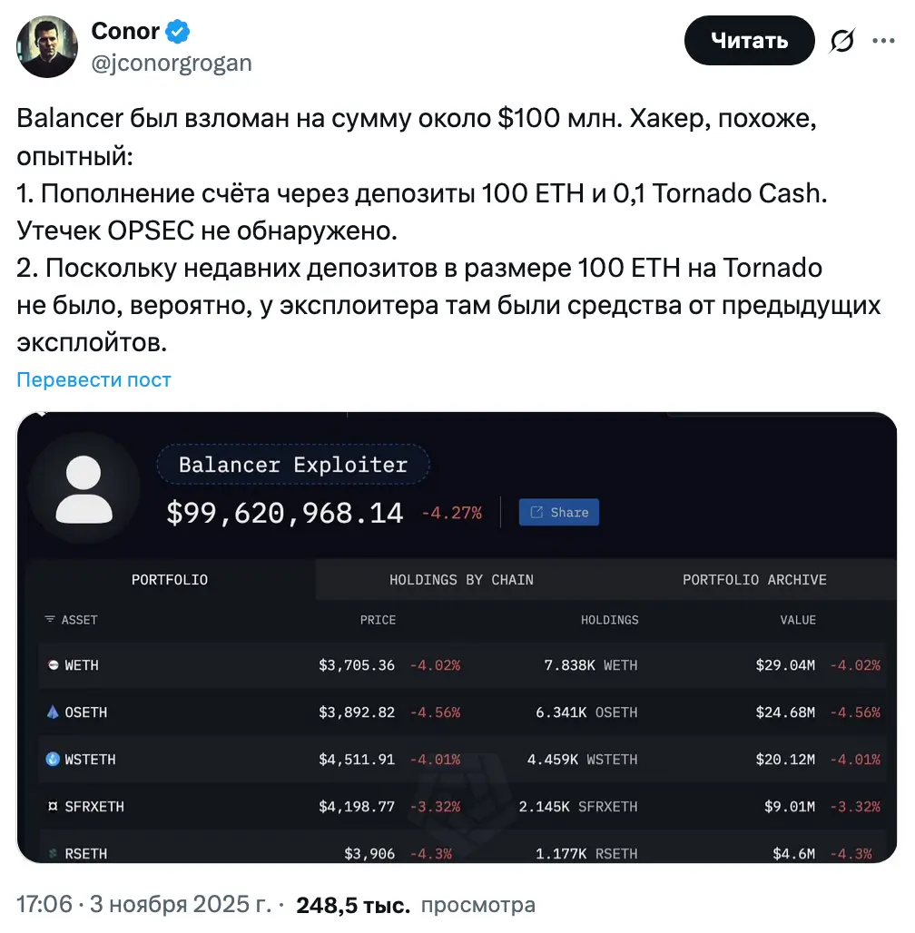 «Наша команда сотрудничает с ведущими специалистами по безопасности, чтобы разобраться в проблеме, и мы поделим дополнительными выводами и полным разбором инцидента как можно скорее», — написала команда Balancer в своем последнем обновлении в X в понедельник.