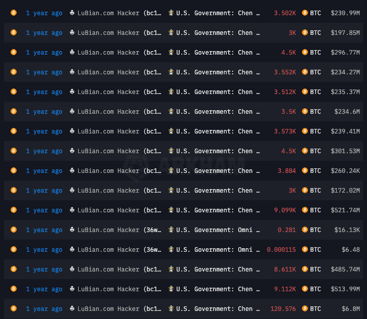 По данным Arkham, доля биткоинов, полученных от LuBian, составляет не менее 39% от всех 326,5 BTC (34 200 000 000 долларов США), хранящихся на адресах, связанных с правительством США, на момент публикации.