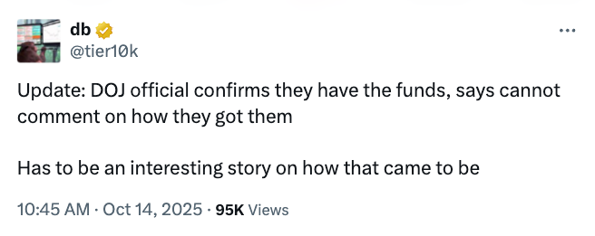 В CVERC заявили, что украденные биткоины на адресах хакера LuBian почти четыре года оставались бездействующими после взлома, пока средства не были «полностью изъяты правительством США» в 2024 году.