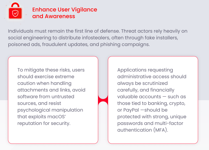 «Чтобы снизить эти риски, пользователи должны проявлять крайнюю осторожность при работе с вложениями и ссылками, избегать программного обеспечения из непроверенных источников и противостоять психологическому манипулированию, которое эксплуатирует репутацию macOS как безопасной системы», — рекомендует Kela.