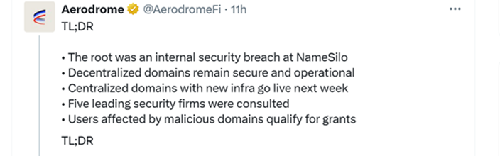 Команда децентрализованной биржи (DEX) Aerodrome в L2 Base выпустила отчет по итогам взлома фронтенда 21 ноября.