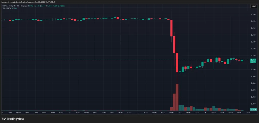 27 декабря котировки токена L1-блокчейна Flow (FLOW) обвалились на 40% — с $0,17 до $0,1. Падение произошло на фоне атаки с ущербом в $3,9 млн.