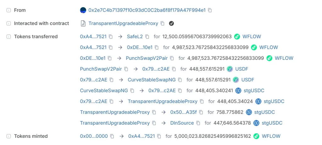 Первым на инцидент обратил внимание пользователь под ником Wazz. По его словам, злоумышленник выпустил 5 млн FLOW и продал их, опустошив пулы ликвидности. Вероятно, преступник скомпрометировал закрытые ключи.