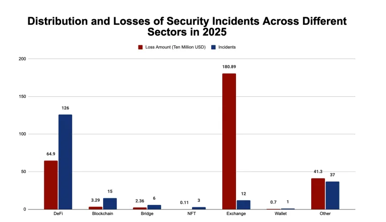 DeFi-сектор остается лидером по количеству инцидентов (126 взломов, 63% от общего числа). Однако совокупный ущерб в направлении снизился на 37% и составил $649 млн.