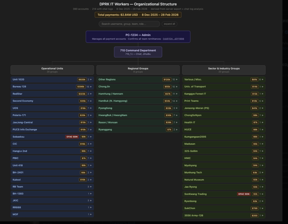 В переписках пользователей фигурируют корейские имена, географические указания в КНДР и закодированные идентификаторы групп, рассказал ZachXBT. В переписках упоминаются три попавшие под санкции США северокорейские организации, Sobaeksu, Saenal и Songkwang: их обвинили в работе на правительство КНДР.